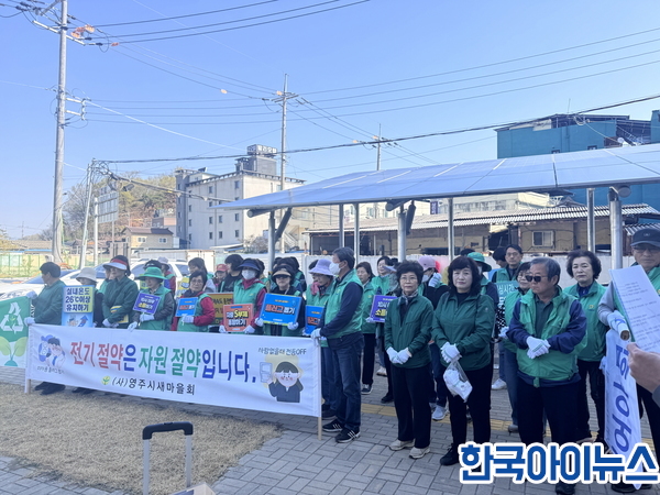 [한국아이뉴스/경북 영주시] =김미영기자= 영주시새마을회(회장 우찬우)는 지난 13일 구성오거리 일원에서 자원안보위기 대응을 위한 에너지 절약 캠페인을 진행했다.