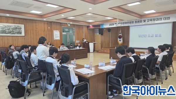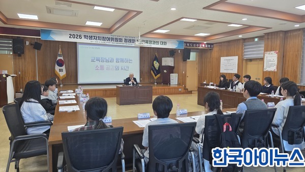 성주교육지원청, 학생자치참여위원회 정기회 개최초·중·고등학교 학생회 대표와 함께하는 소통·공감의 시간[한국아이뉴스/경북 성주군] =김미영기자= 성주교육지원청(교육장 김시용)은 2026년 4월 16일 성주교육지원청 주관으로 「성주 학생자치참여위원회 정기회 및 교육장과의 대화」 행사를 개최했다. 이번 행사에는 관내 초·중·고등학교 학생회장 22명이 참여해 학생자치 활성화와 학생 참여 확대를 위한 뜻을 모았다.